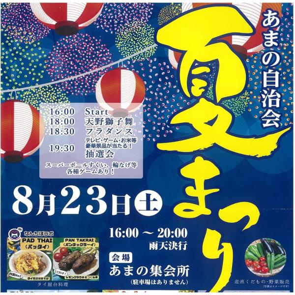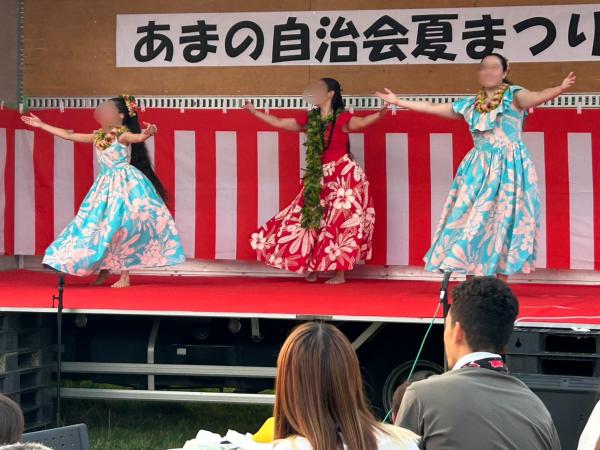 この夏、当園のあるあまの自治会で 8年ぶりとなる夏まつり が開かれました。小規模のお祭りですが、フラダンスや獅子舞など楽しい催し物が盛りだくさんで、会場はとってもにぎやか!