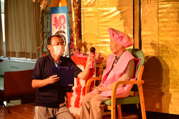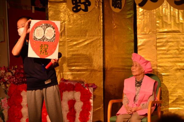 本当の誕生日の前日、N様のデイご利用日に合わせて行われた百寿を祝うイベントの中で司会進行係がN様にマイクを向けました。