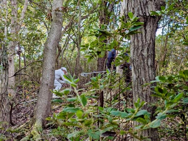 足を踏み入れるだけでも大変な場所での作業。