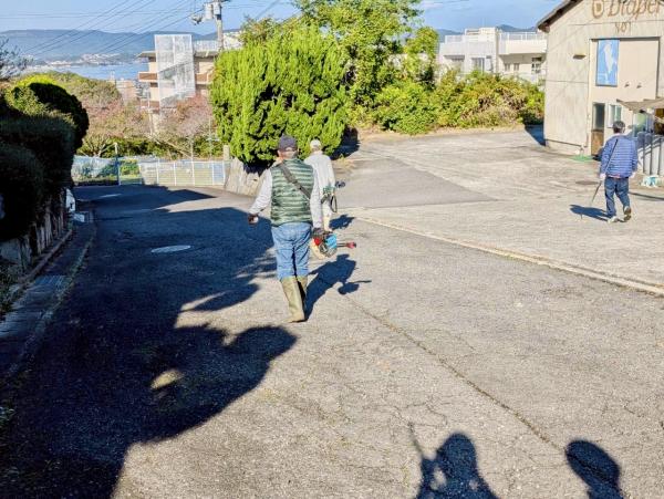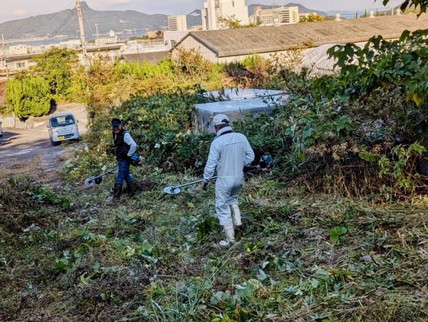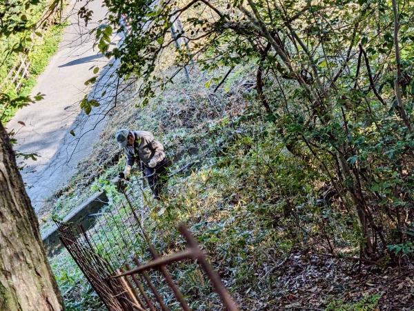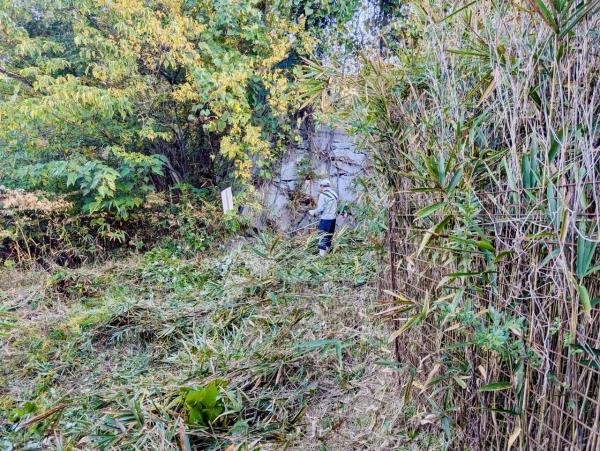 防護柵に絡まった草の除去、周辺の除草、伐採した枝の運搬など。