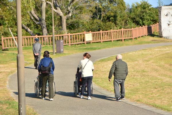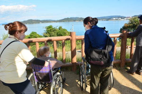車いすの方も職員がサポートしながら、一緒に散歩を満喫され、笑顔で海風を感じられていたのがとても印象的でした。